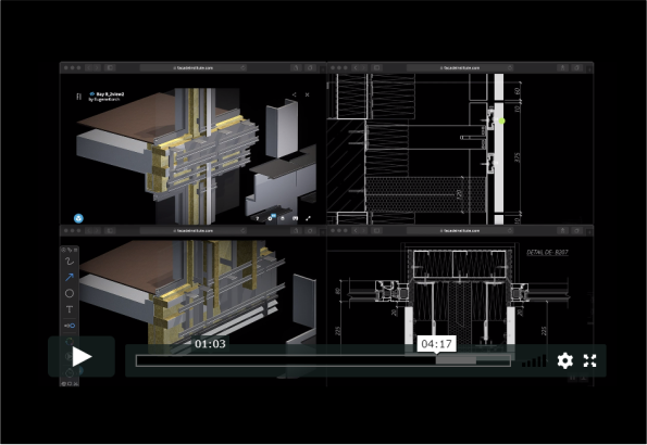Unique appearance of the façade was achieved with all standard systems that are available in most profile system suppliers and feasible for majority of UK-based contractors. Detail drawings, videos and explanatory clips explain buildability, performance, compliance and assembly-specific aspects.