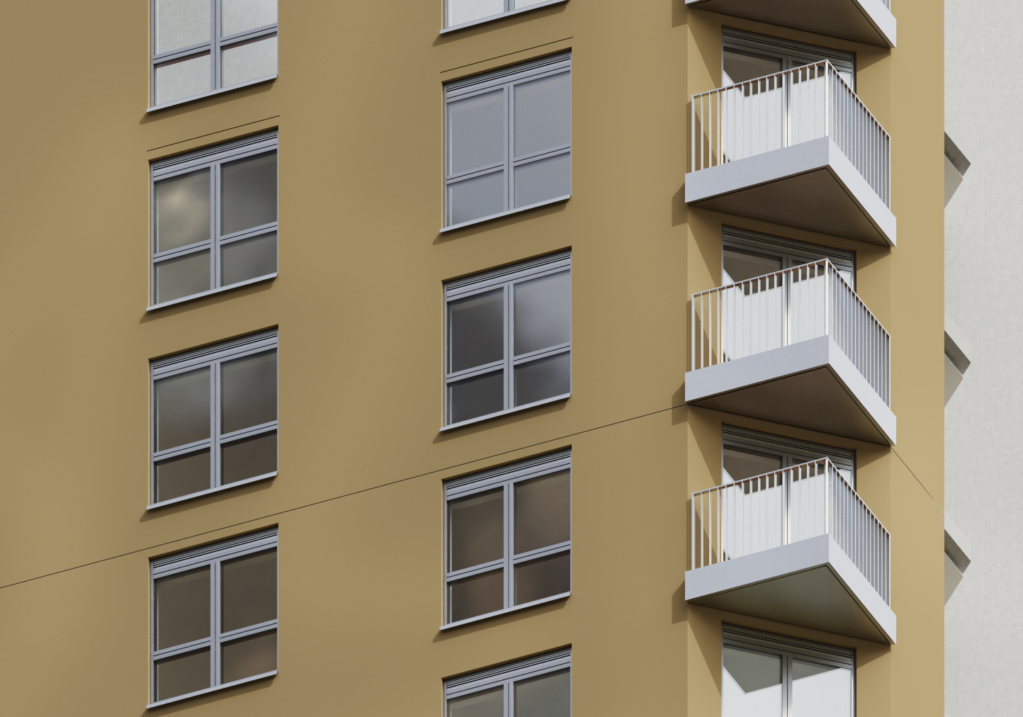 This case study is on façade insulated render and storey height openings and balconies. Over the last two decades, the insulated render became one of the most used façade-treatment systems. Most of the buildings with insulated render are now at the end of their service and design lives. Some of them require minor repairs, while others need to replacement of large areas. The building has a high-performance envelope with feature openings and a minimalistic, yet elegant outlook.
